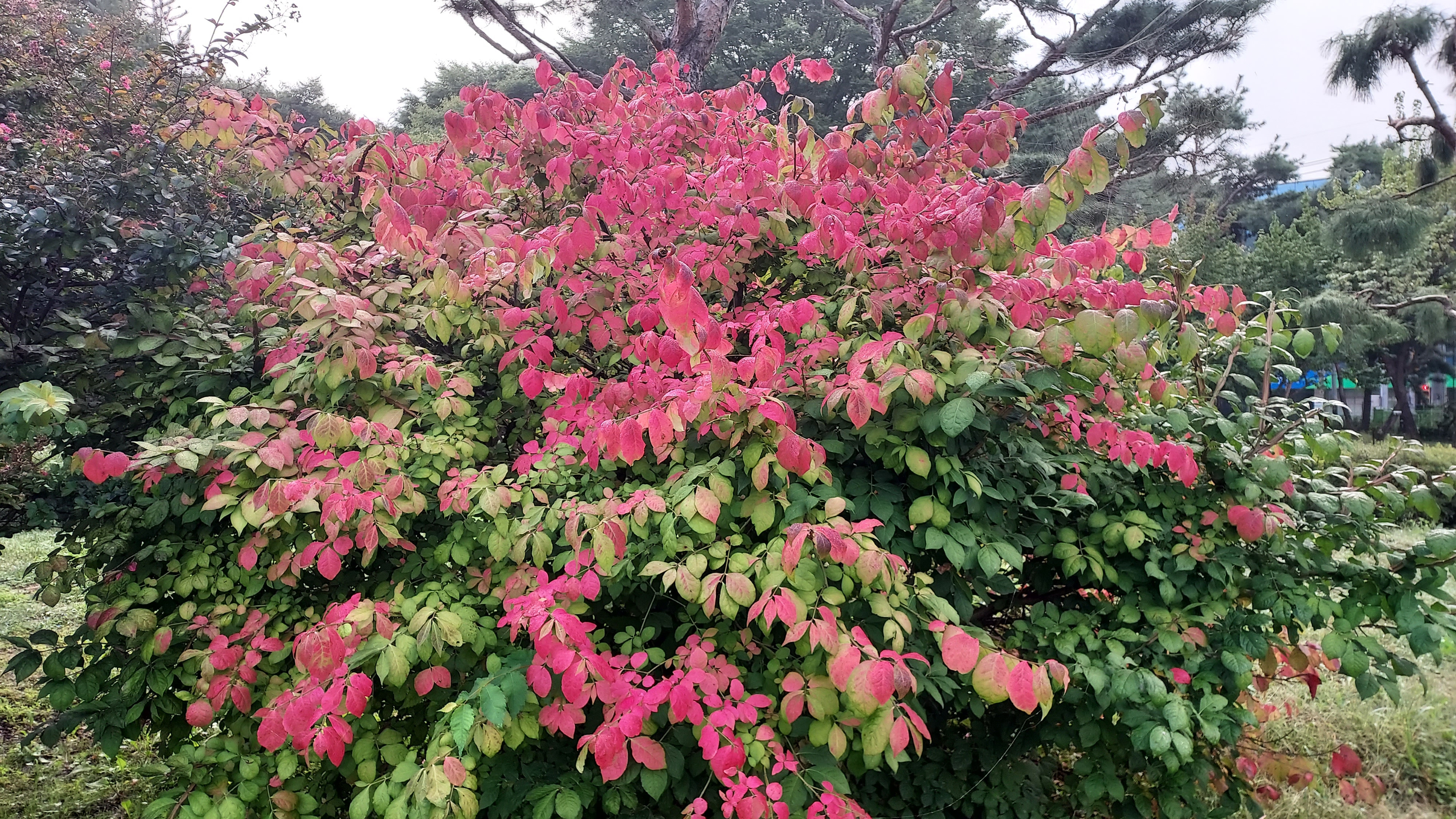 화살나무의 단풍이 시작입니다.